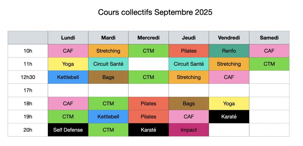 Planning des cours collectifs en cours